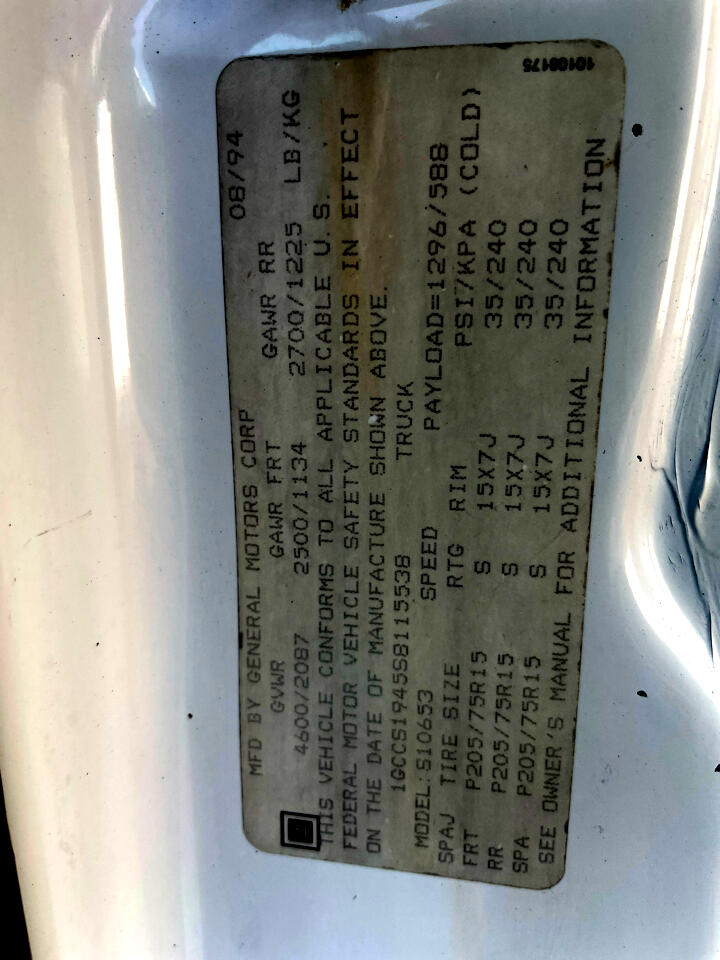 Vehicle Inquiry for 1995 Chevrolet S10 Pickup LS Ext. Cab Short Bed 2WD