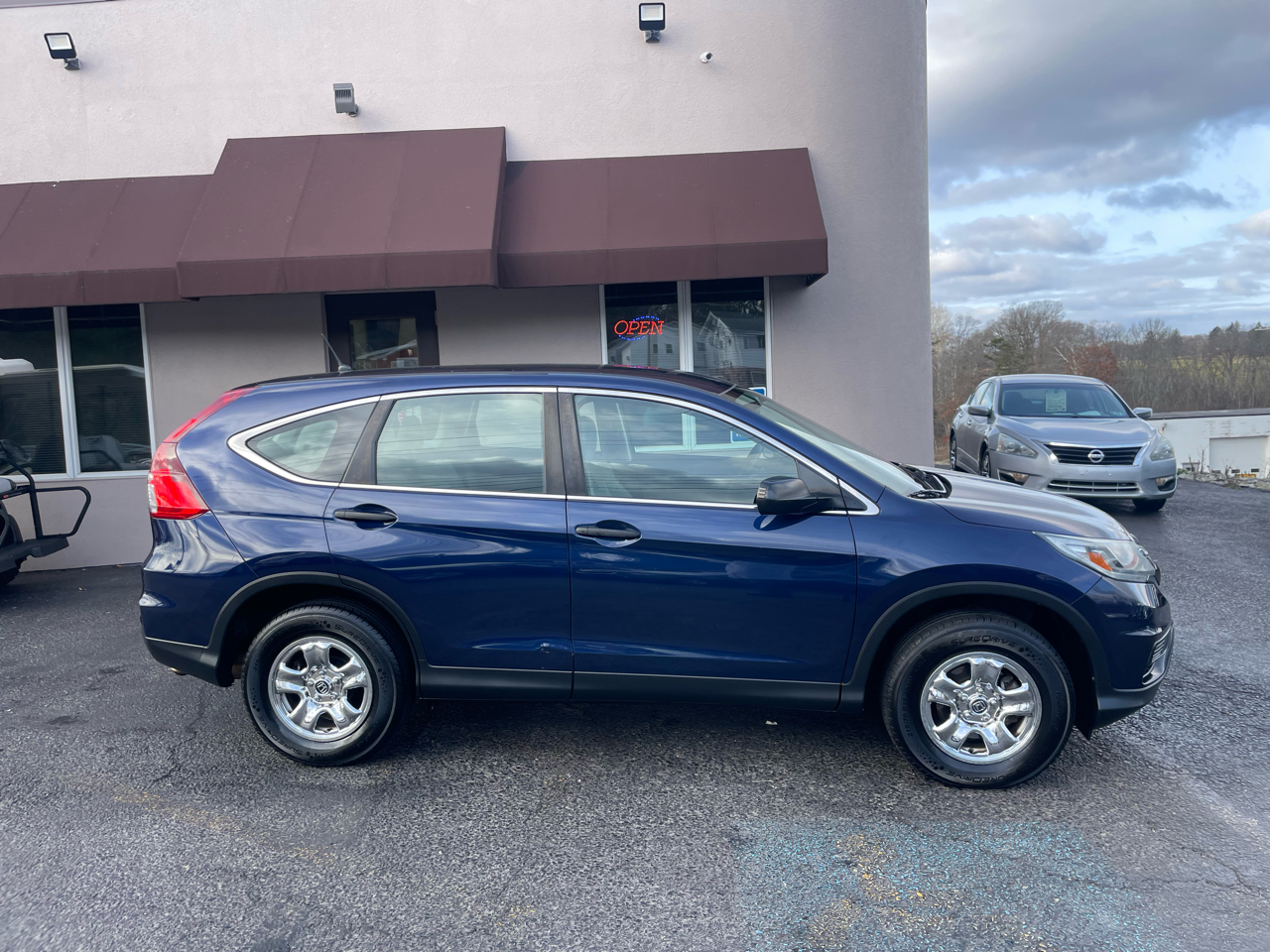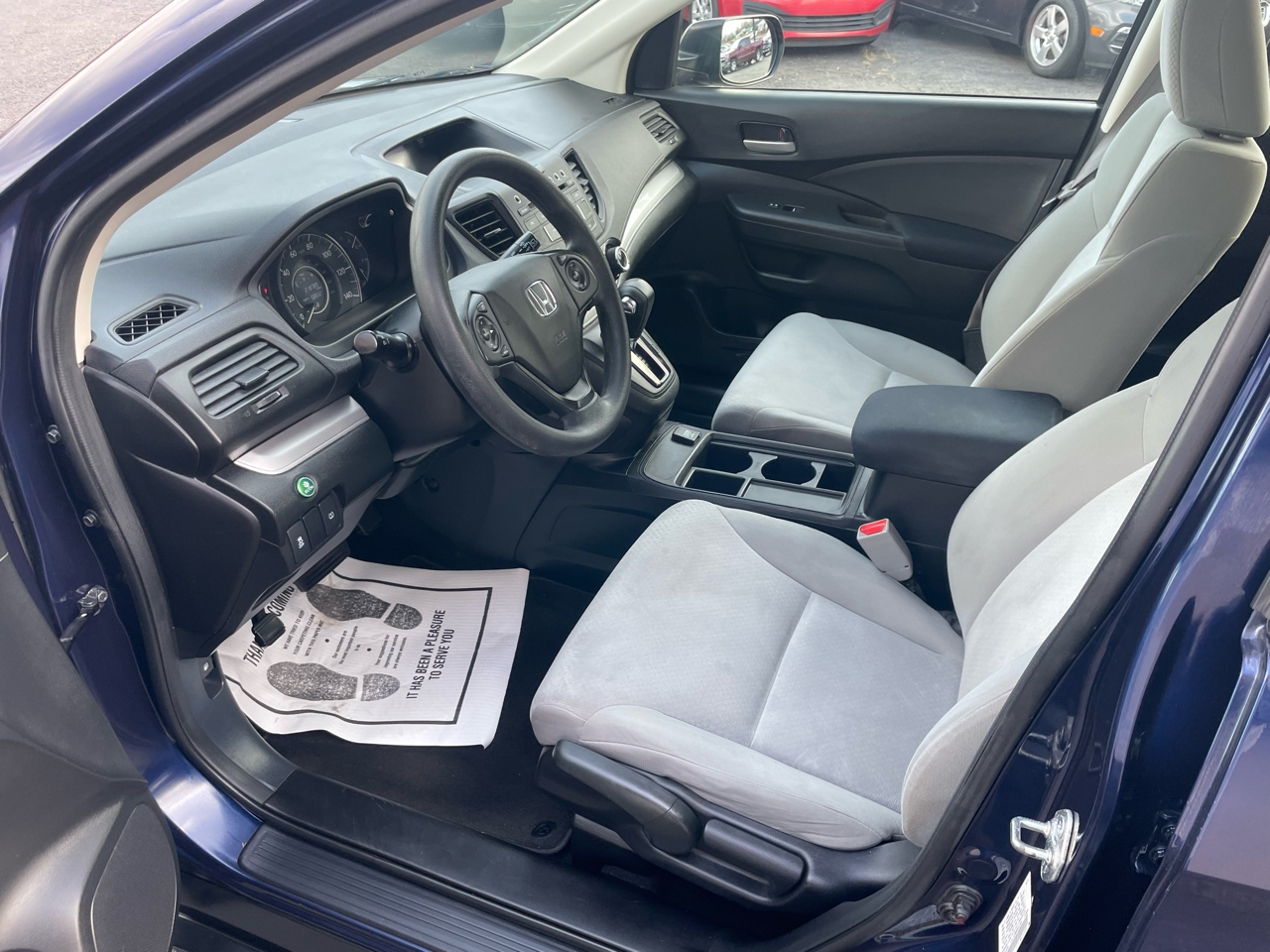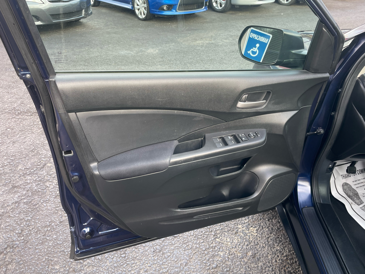 Take a joyride in this sleek Blue 2015 Honda CR-V! This beauty is loaded with all the bells and whistles you need for a fantastic drive, from its stylish chrome wheels to its high intensity discharge headlights. With the convenience of a backup camera and Bluetooth connectivity, you'll always be in control and connected on the road. Plus, rest assured knowing that this vehicle comes with a Carfax report for added peace of mind. From the leather-wrapped steering wheel to the front air dam and rear spoiler, this CR-V is sure to turn heads wherever you go. And with features like anti-lock brakes, traction control, and side curtain airbags, safety is a top priority. So hop in, crank up the AM/FM radio, and enjoy the smooth ride of this impressive Honda CR-V.