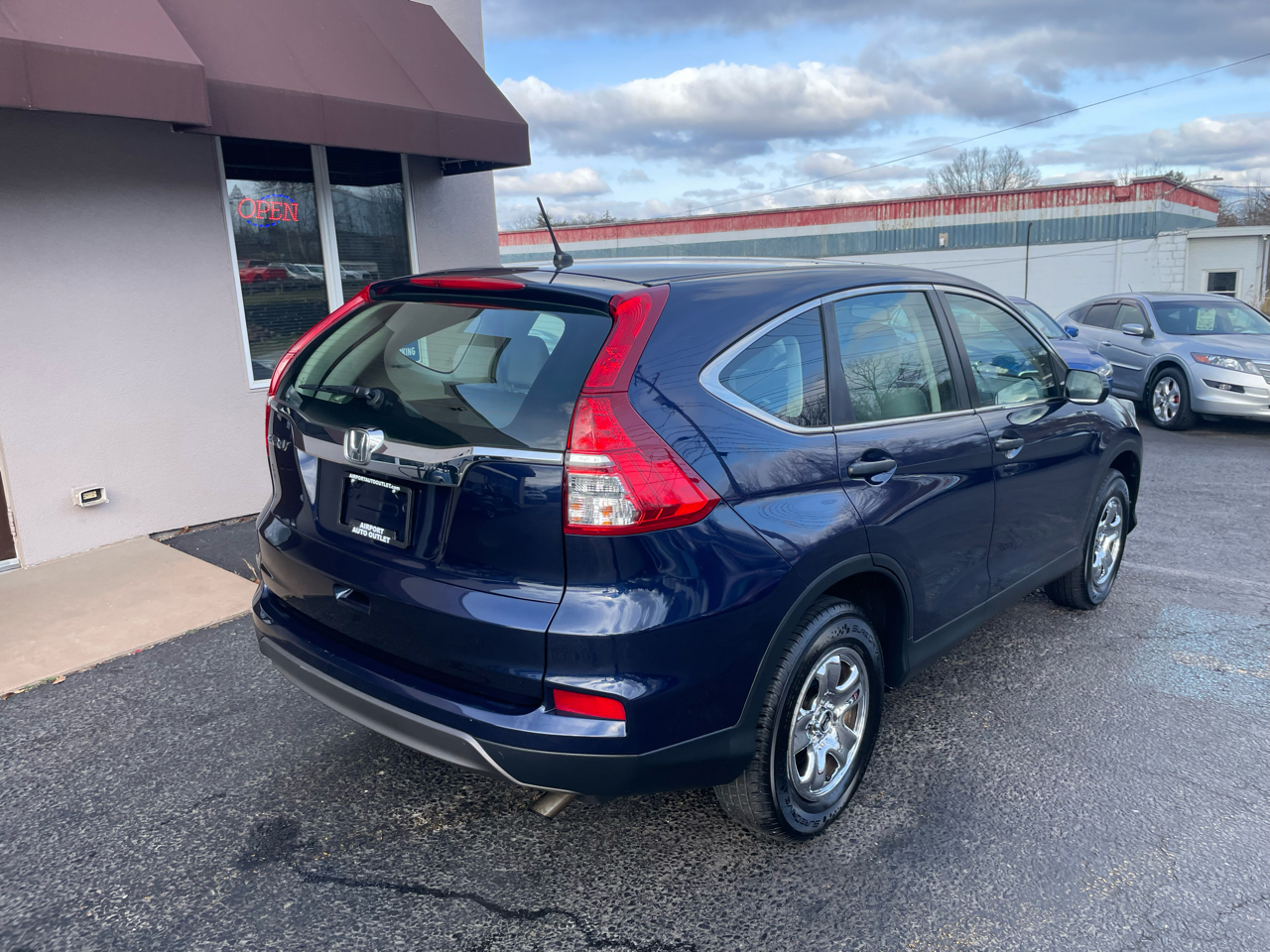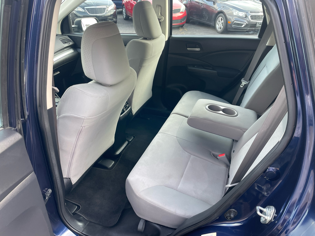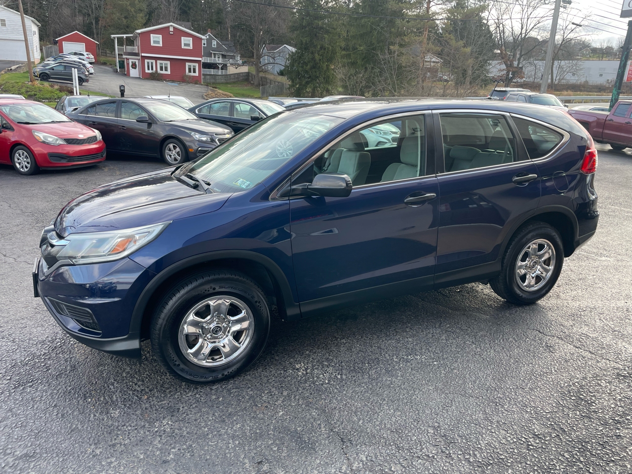 Take a joyride in this sleek Blue 2015 Honda CR-V! This beauty is loaded with all the bells and whistles you need for a fantastic drive, from its stylish chrome wheels to its high intensity discharge headlights. With the convenience of a backup camera and Bluetooth connectivity, you'll always be in control and connected on the road. Plus, rest assured knowing that this vehicle comes with a Carfax report for added peace of mind. From the leather-wrapped steering wheel to the front air dam and rear spoiler, this CR-V is sure to turn heads wherever you go. And with features like anti-lock brakes, traction control, and side curtain airbags, safety is a top priority. So hop in, crank up the AM/FM radio, and enjoy the smooth ride of this impressive Honda CR-V.