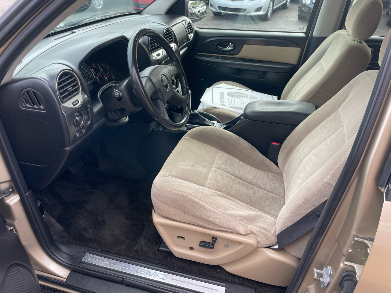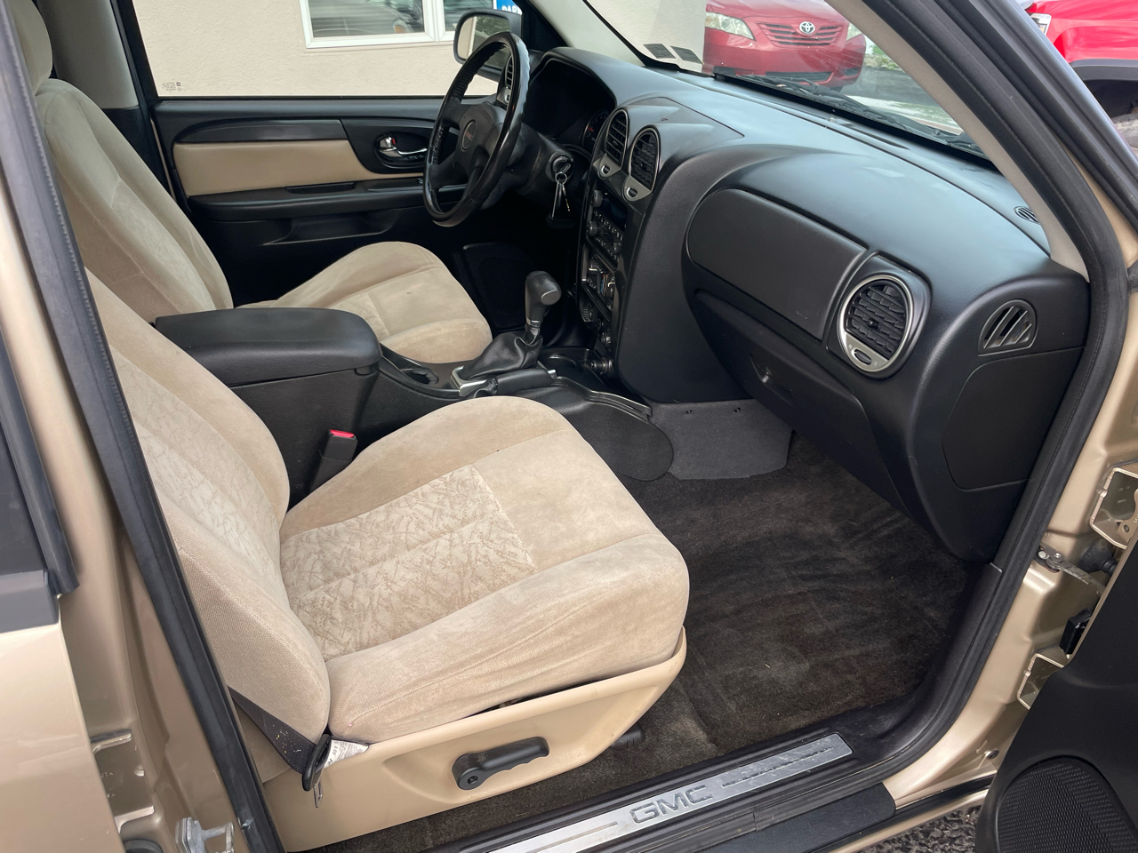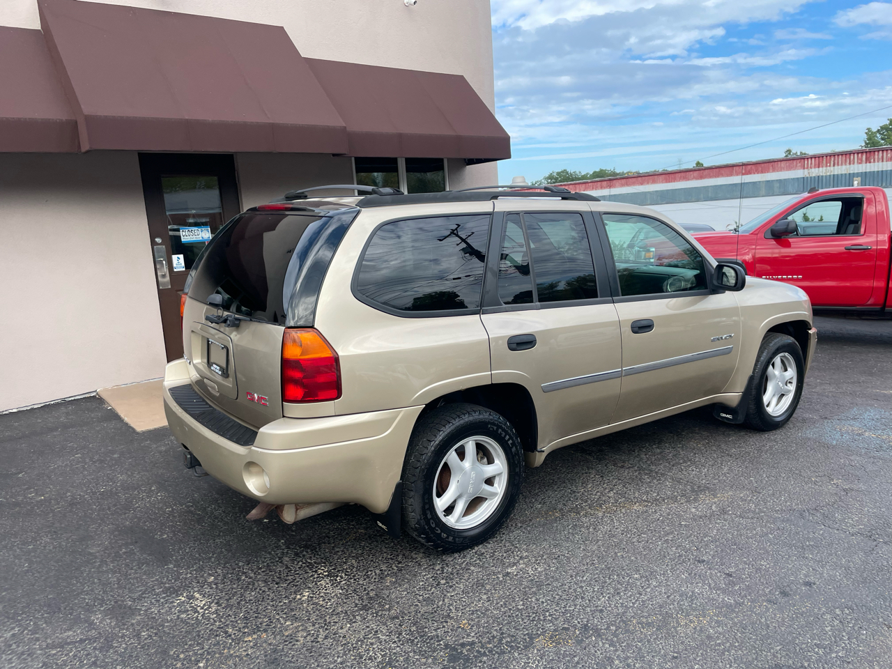 Hop into this flashy Gold 2006 GMC Envoy and get ready to hit the road in style! With a sleek Luggage Rack on top and a Rear Spoiler in the back, this Envoy is ready to turn heads wherever you go. The Tinted Windows provide a touch of mystery, while the Alloy Wheels add a touch of sophistication to this rugged SUV. Buckle up in the comfortable Bucket Seats and let the powerful Engine take you on all your adventures. This Envoy comes equipped with a Tow Package, perfect for hauling your toys along for the ride. Don't worry about safety - the Anti-Lock Brakes and Vehicle Stability Control System have got your back. Need to check your tire pressure or monitor your trip? No problem! This Envoy also features a Tire Pressure Monitor and Trip Computer. Plus, with a Carfax report available, you can hit the road with confidence knowing the history of this fantastic vehicle. Get behind the wheel of this versatile Envoy today and experience the ultimate driving experience!